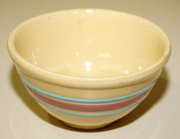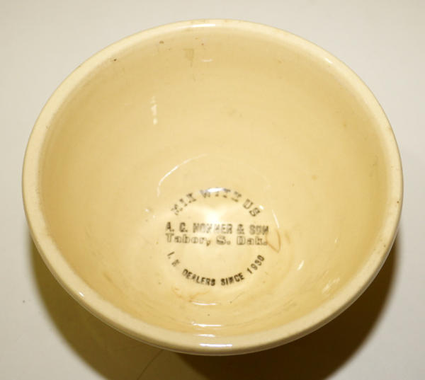 6" across, no chips, small crows foot crack by the logo, might clean up with some bleach