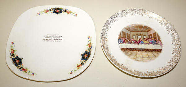 larges is 10" across, Last Supper plate has the advertising on the back side, 2x the money