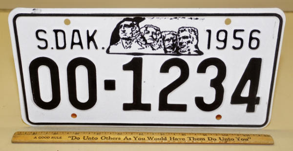 unusual plate, near mint, the production plate for '56 was green on cream w/ a Rushmore decal