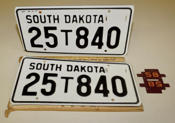 NOS Plates, light storage wear, includes the envelope, no date on the plates, includes the '58 tags too