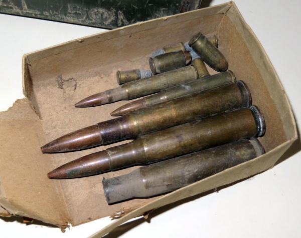 Can is very dirty, includes 2-rounds of .50cal and other misc.; sell for one money