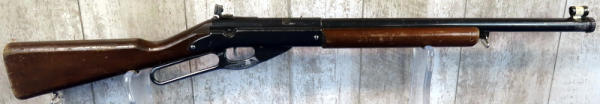unique w/factory peep sights; wood stock; works but extremely weak compression; has some use marks