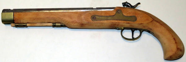 believe to be a .45cal; stainless oct. 10" barrel; unfinished wood frame; hammer & trigger mech will not function; No transfer needed