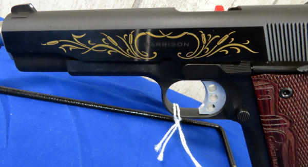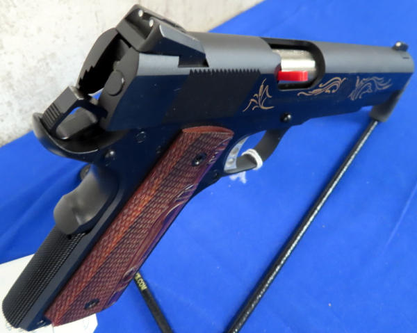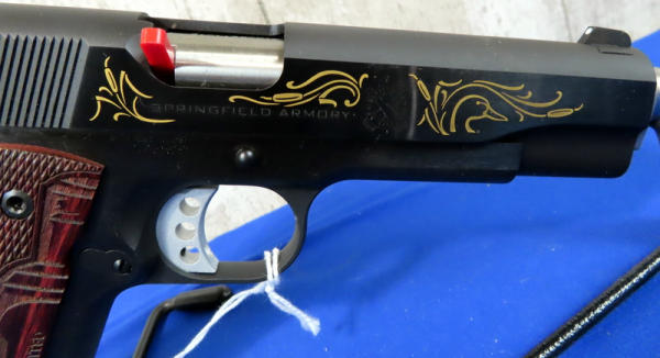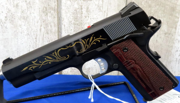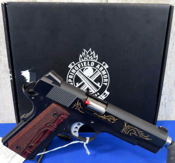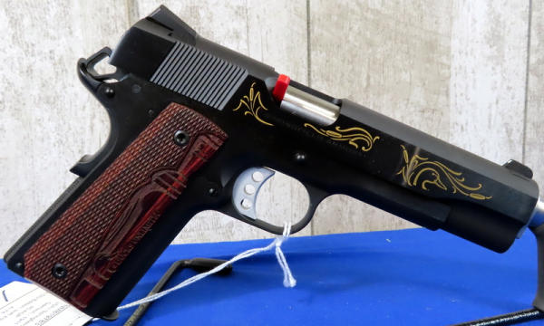 5" Stainless barrel; blued frame w/gold scrolling and DU head logo on slide; wood checkered grips w/Duck call graphics; night sights; factory box & soft zippered case; mint & unfired; one magazines; USA; SN#NM819783; A-74