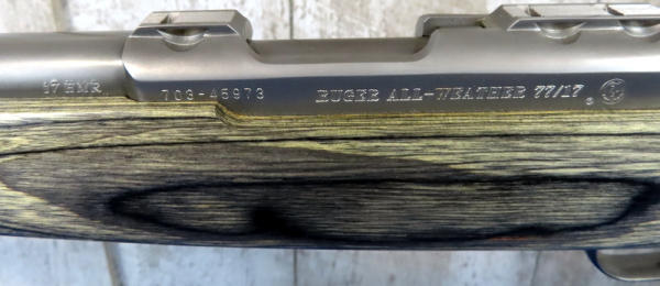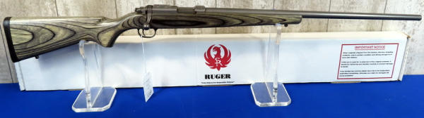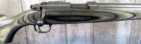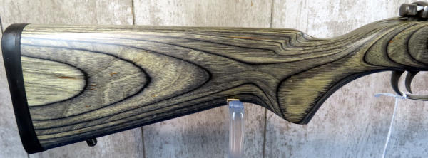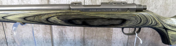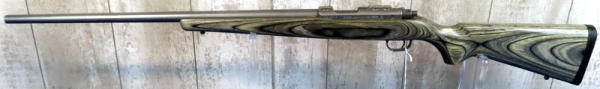 looks unfired; factory box; 3-magazines; gray wood grain laminate stock; 24" stainless barrel; smooth action; USA; SN#703-45973; A-73