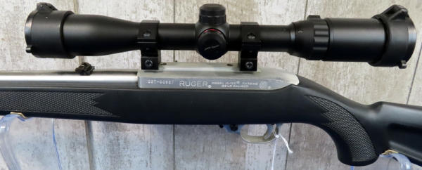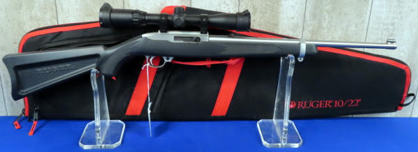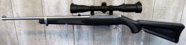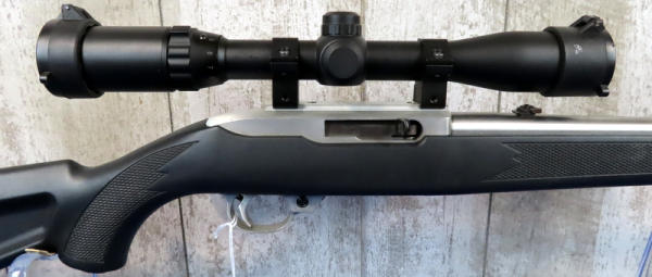 18.5" Stainless barrel; black synthetic skeleton/paddle stock; Center-Point 3-9x32 scope; factory zippered soft case; scope flip open caps; like new condition; USA; SN#237-00967; A-98