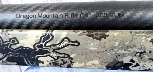 23" Oregon Mountain Rifle Co. Carbon Fiber Bbl. w/2" Flash hider; Viper Synthetic camo stock; stainless receiver; removable magazine; tapped & drilled; nice looking firearm; USA; SN#RR51815M; A-97