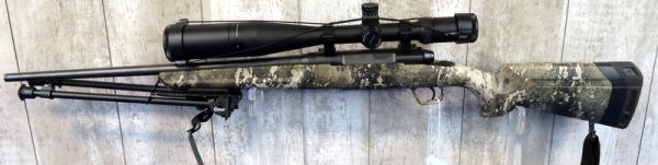 22" Bbl.; smooth action; like new condition; Strata camo synthetic stock; sling; Caldwell bi-pod; Vortex Viper 6-24x50 scope w/sun shade!; removable magazine; great set-up and ready to hunt!; USA; SN#N823610; A-104