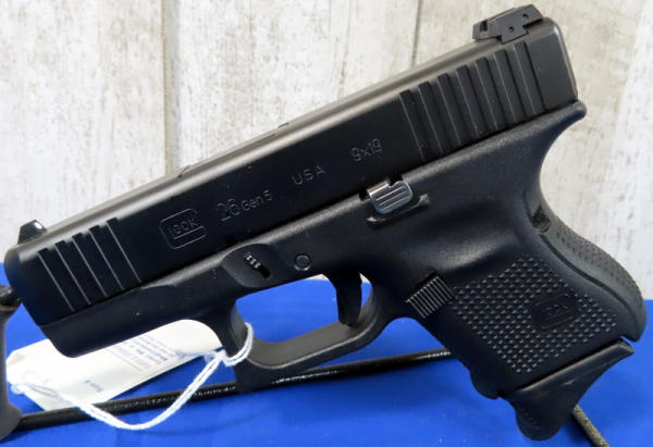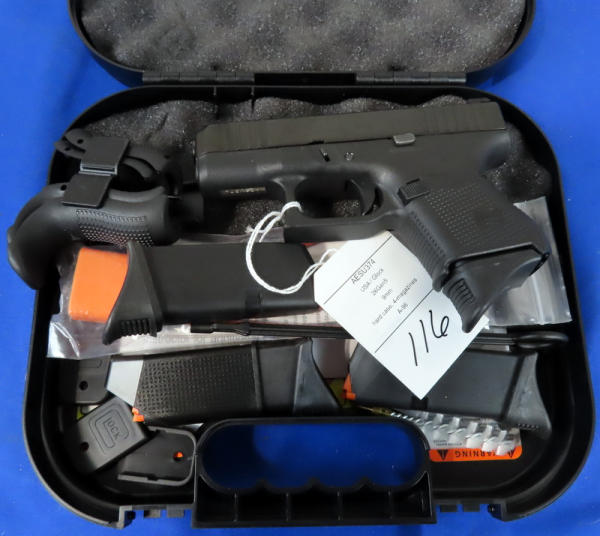 3-3/8" Bbl.; night sights w/rear white outline; 4-magazines; factory hard case; looks like new, near mint!; black synthetic frame; USA; SN#AESU374; A-96