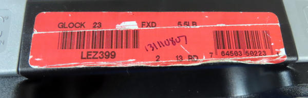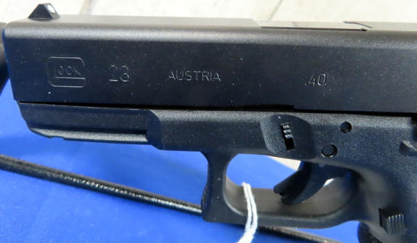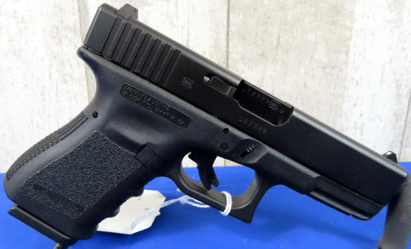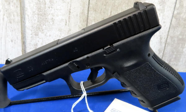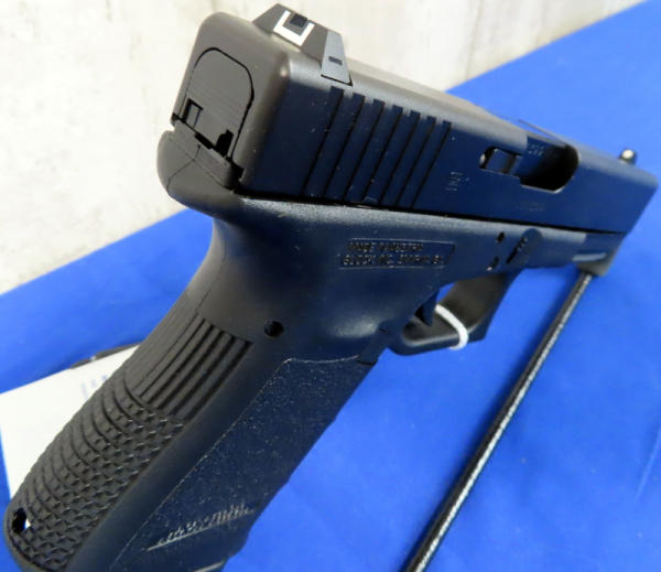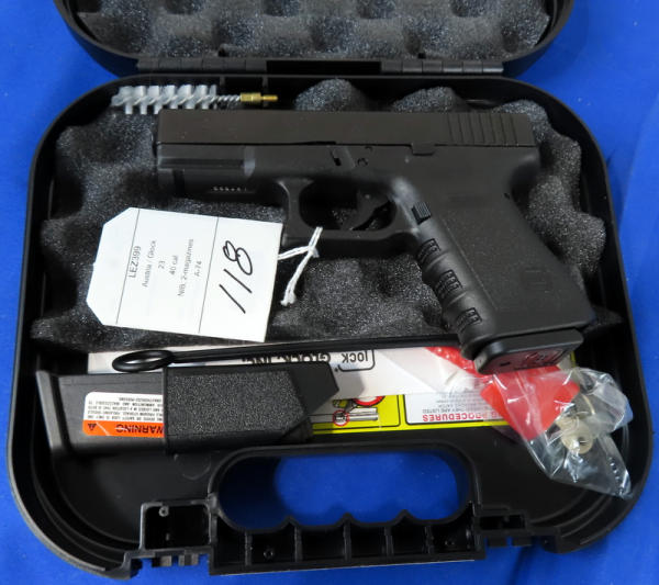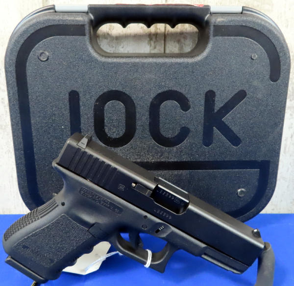 4" Bbl.; night sights w/rear white outline; black synthetic frame; factory hard case; 2-magazines; Austria; SN#LEX399; A-74