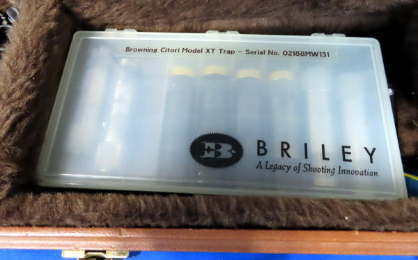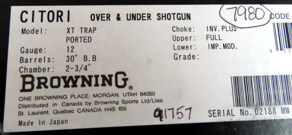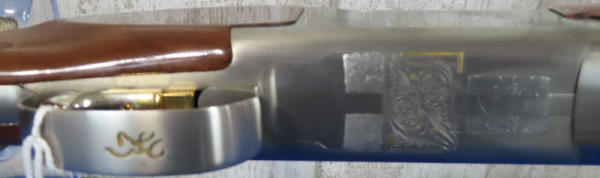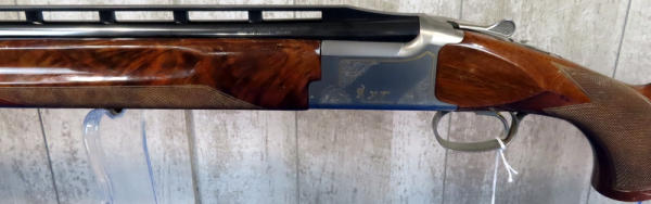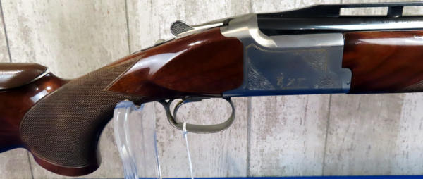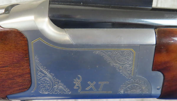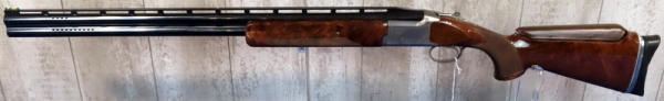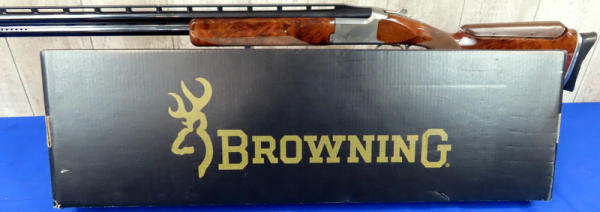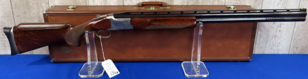 30" VR-Ported BBLs; easy break action; hy-vis front sight; adjust check rest & recoil pad; right hand swell in stock; gold trigger; stainless receiver w/factory engraving and gold accents; includes several chokes; 2.75"; Japan; includes factory box and leather Browning Suitcase style case; great set-up!; SN#021188MW131; A-73