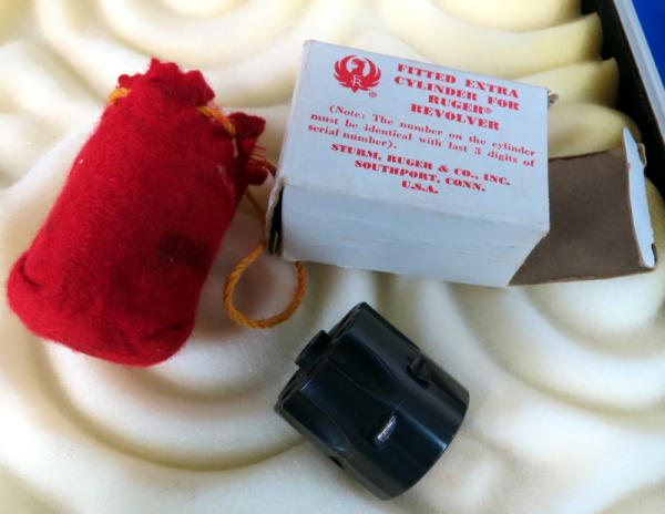 9.5" Bbl.; includes the 22LR cylinder as well; 6-shot fixed cylinders; smooth wood grips; includes a hard case; like new condition; USA; SN#66-91916; A-110