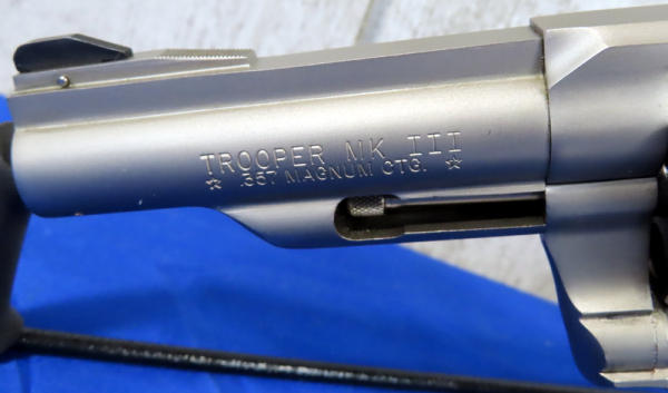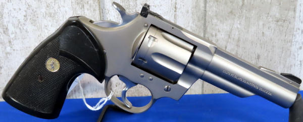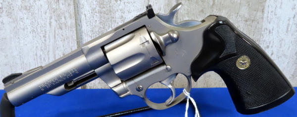 4" Stainless barrel; hard rubber factory checkered grips; 6-shot swing out cylinder; includes leather Hunter Holster & 20 rounds of PMC Eldorado Starfire 150gr. JHP ammo; Ammo cannot be shipped with the gun if needing to be shipped!; USA; SN#84136L; A-87