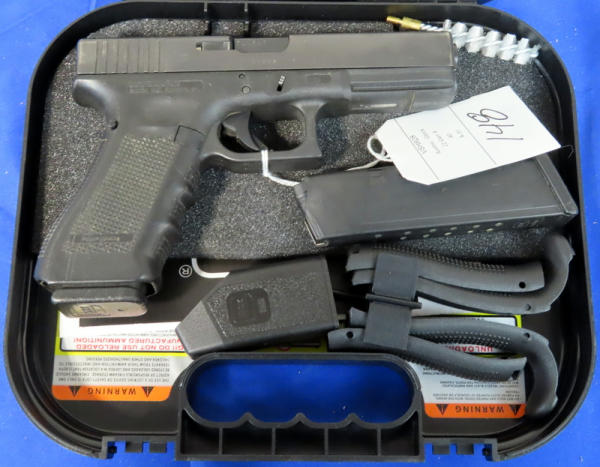 4.5" Bbl.; black synthetic frame; night sights; 2-magazines; fired but clean; factory hard case; Austria; SN#VSH928; A-31