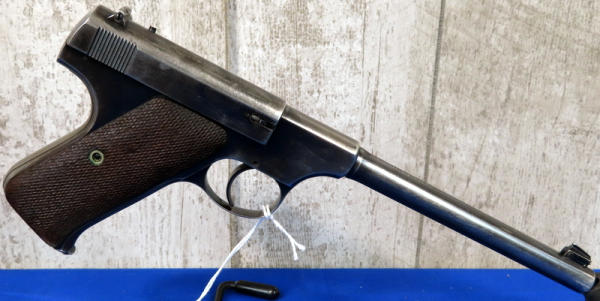 6.75" Bbl.; wood checkered grips; bluing is thin in parts; one magazine; mfg.1924; USA: SN#40163; A-82