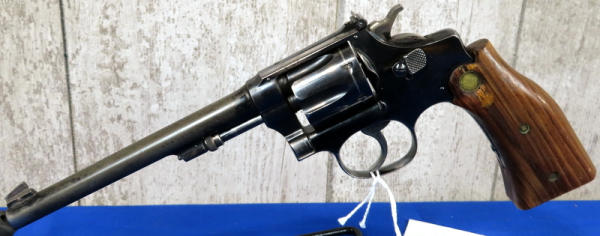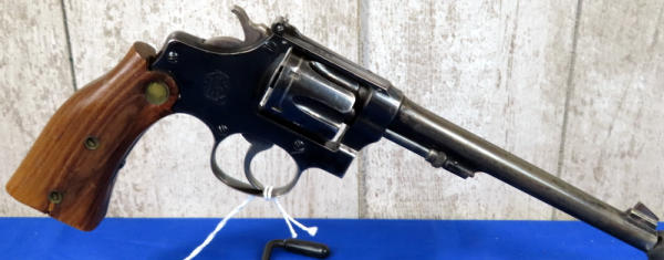 6" Bbl.; smooth wood grips; bluing & finish loss on much of the metal; 6-shot swing out cylinder; USA; SN#208026; A-111