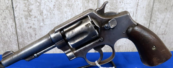 4" Bbl.; bluing is pretty much gone; has some pitting in some places; smooth wood grips; 6-shot swing out cylinder; USA; SN#54456; A-46