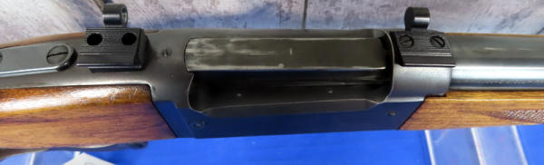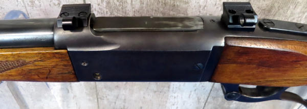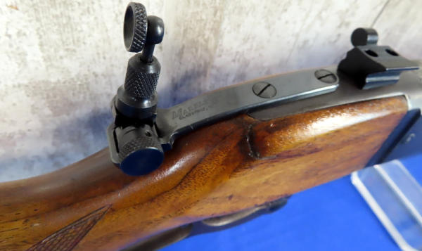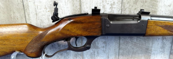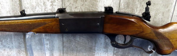 24" Bbl.; smooth action; Marbles rear tang flip up peep sight; has swing out scope blocks; bluing dull on receiver; nice wood w/good checkering; USA; SN#665147; A-82