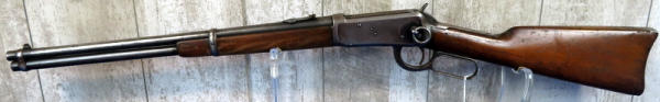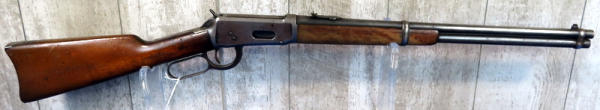 20" Rnd. Bbl.; smooth action; bluing is thin on receiver; wood is solid but has finish loss; saddle ring; metal butt plate; full length receiver tube; USA; SN#484049; A-104