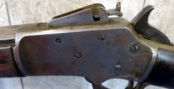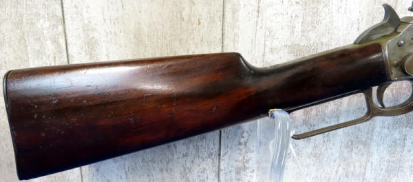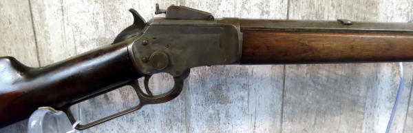 26" Oct. Bbl.; has a rare factory Marlin Hepburn Peep Sight; very smooth action; bluing is dull & thin; overall wood is nice shape; mfg.1916; USA: SN#A497; A-82