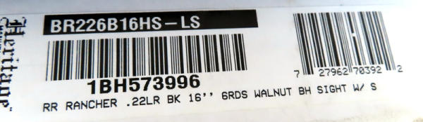 16" Bbl.; mint & unfired; factory box; wood stock; considered a rifle; USA; SN#1BH573996; A-106