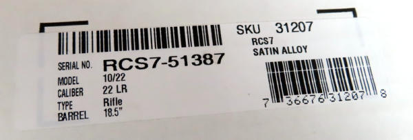 18.5" Bbl. w/threaded muzzle; synthetic stock w/American Flag design; removable magazine; hy-vis front & rear sights; mint & unfired; factory box; USA;SN#RCS7-51387; A-102