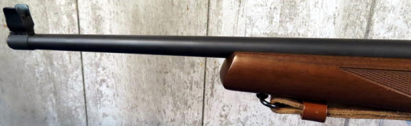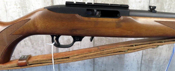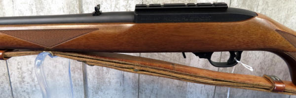 18.5" Bbl.; leather sling; near perfect wood stock w/checkering; picatinny rail; target front sight; like new w/factory box; removable magazine; USA; SN#354-70597; A-73