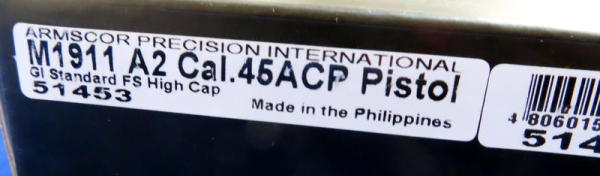 5" Bbl.; hard plastic checkered grips; one magazine; mint & NIB w/factory zippered soft case; Philippines; SN#RIA281090990; A-101