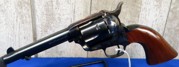 5.5" Bbl.; smooth wood grip; 6-shot fixed cylinder; looks mint & unfired; case hardened receiver; non-factory hard case; Italy; SN#UR3069; A-110