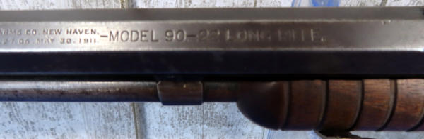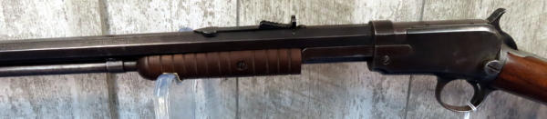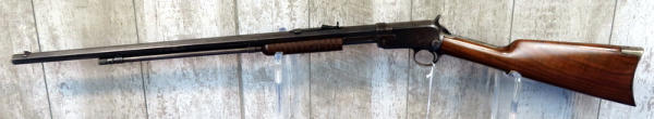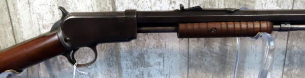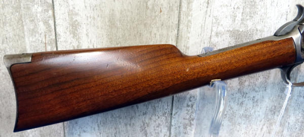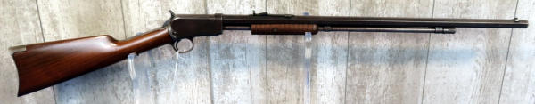 24" Oct. Bbl.; action is alittle stiff; overall nice wood, stock has high gloss finish, forearm has dull finish w/honeycomb grooves; crescent metal butt plate; bluing is dull; USA; SN#802517; A-111