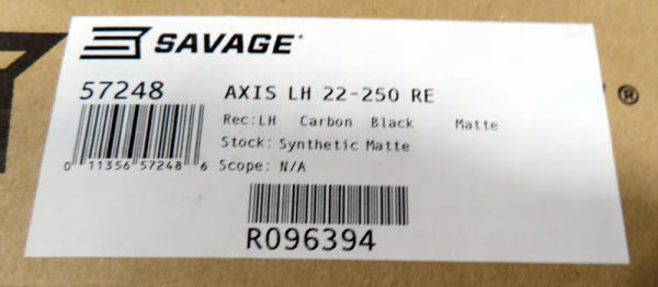 22" Bbl.; mint & unfired; factory box; black synthetic stock; drilled & tapped; removable magazine; USA; SN#R096394; A-102