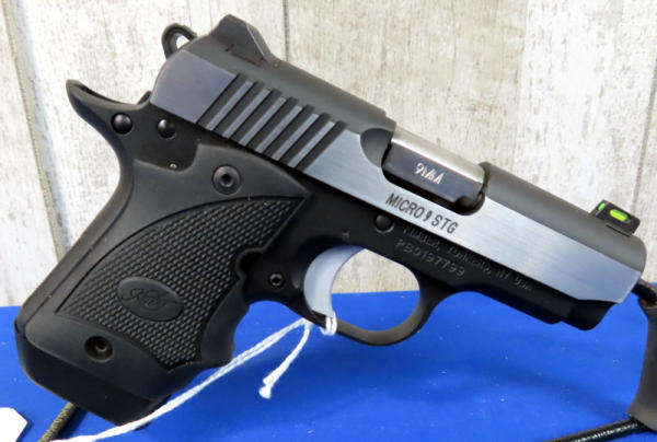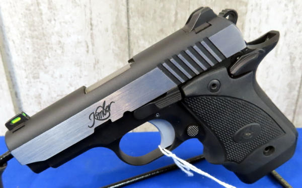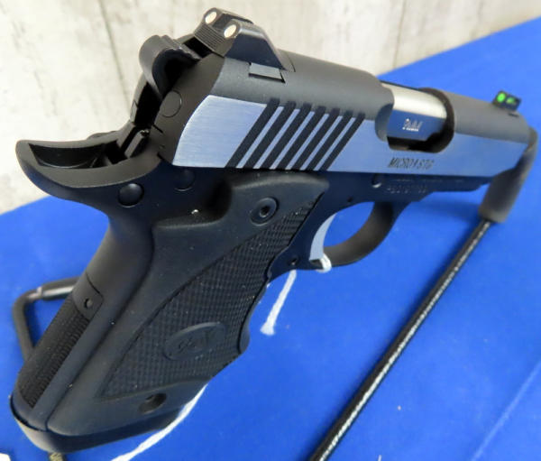 3" Stainless barrel; like new; factory zippered case & box; 2-magazines; hy-vis front sight w/rear night sights; rubber grips; stainless slide; leather holster; nice looking gun; made in USA; SN#PB0197799; A-90