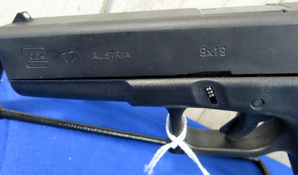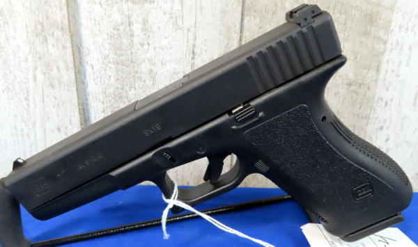 4.5" Bbl.; black synthetic frame; night sights w/rear white outline; one magazines; factory hard case; Austria; SN#ADP654; A-96