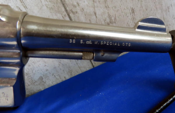 4" Stainless barrel; wood checkered grips; 6-shot swing out cylinder; has some wear; USA; SN#36345; A-108