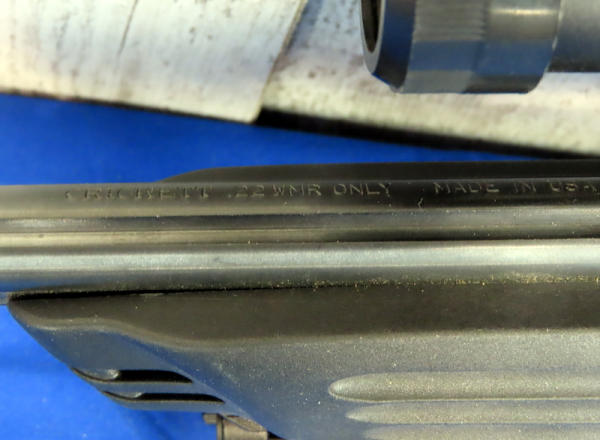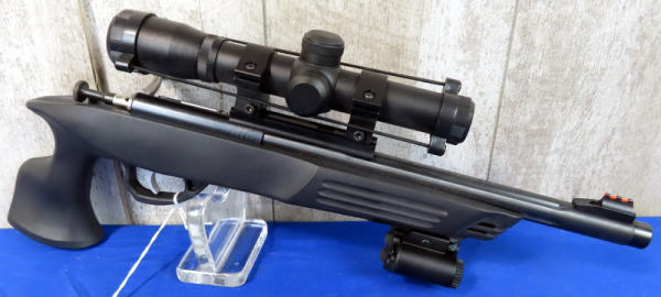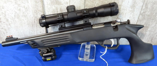 10.5" threaded & fluted Bbl.; smooth action; black synthetic stock; scope; light & laser; like new condition; USA; SN#738604; A-106