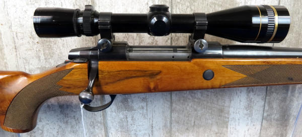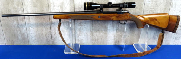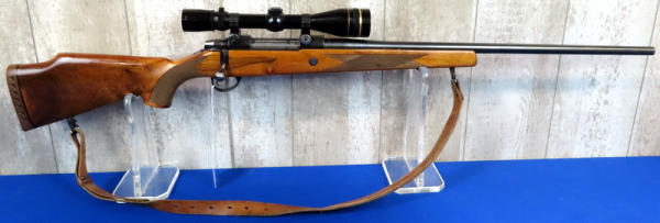 25" Bbl.; action is alittle gummed up, needs some oil; leather sling; beautiful stock w/great gloss, wood grain & checkering; nice bluing; Leupold Vari-X III 3.5x10 scope; Finland; SN#578397; A-104