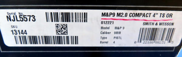 4" Bbl.; optics ready w/night sights; black synthetic frame; mint & unfired; factory box; 2-magazines; USA; SN#NJL5573; A-114