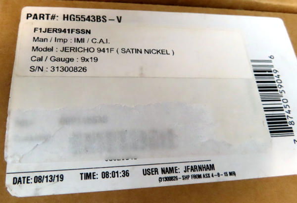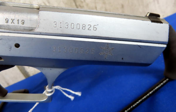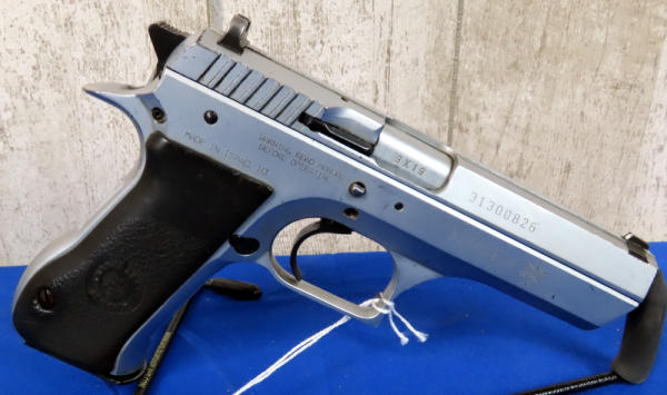 4-3/8" Stainless barrel; plastic grips; used and has some minor wear; night sights; 3-magazines; includes a brown box; Israel; SN#31300826; A-108