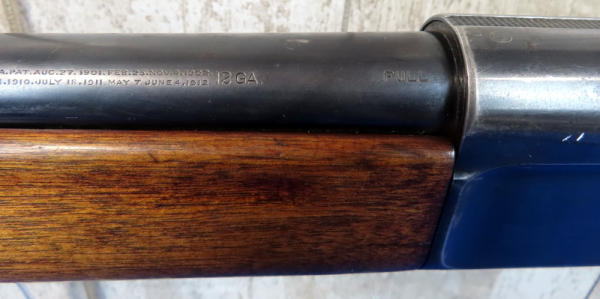 26" Rnd. Bbl.; barrel retracts to put shell in chamber; has some pitting on right side of receiver; wood has some minor field marks; FC; USA; SN#A18759; A-82