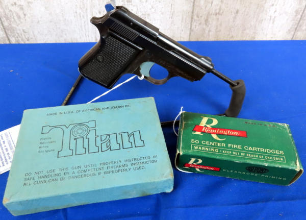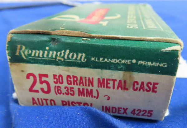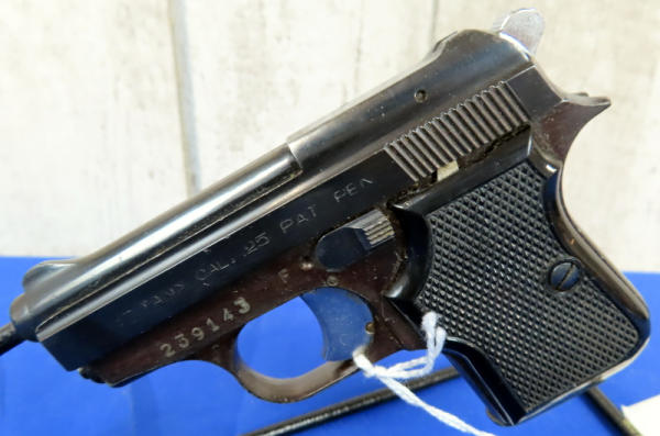 2.5" Bbl.; black plastic checkered grips; factory box; one magazine; 45 rounds Remington 25ACP 50gr. MC ammo; ammo can not ship w/fire arm if needing shipping; USA; SN#239143; A-61