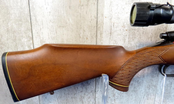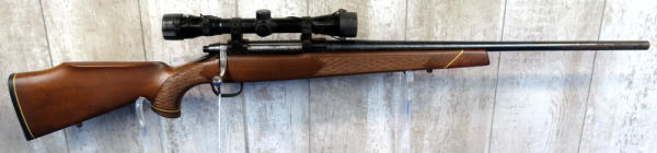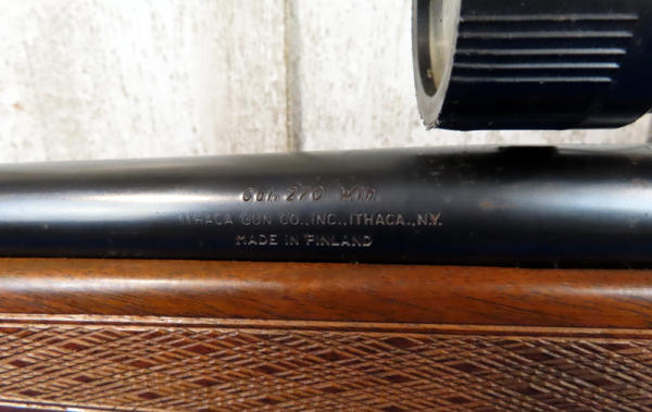 22" Bbl.; barrel & bolt has surface rusting and spotting; wood overall is nice w/good checkering; WesternField 4x32 scope; smooth action; Finland; SN#650-31529; A-61