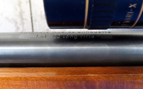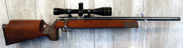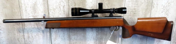 21.5" Threaded Bbl.; smooth action; heavy wood target stock w/thick forearm; Leupold 4x12 Vari-X IIc scope; shows some use marks; Germany; SN#1186279; A-77