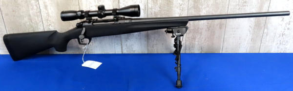 24" Bbl.; like new condition; Caldwell Bi-Pod; 3-9x40 scope; removable magazine; black synthetic stock; USA: Sn#RM86166G; A-104