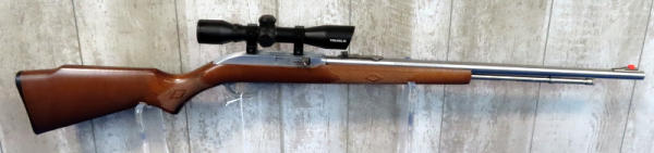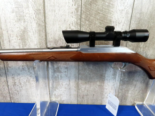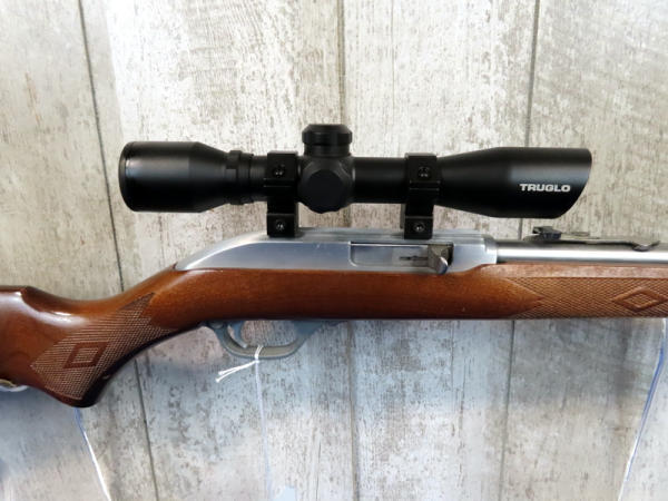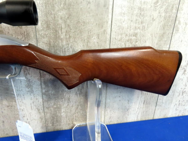 22" Stainless barrel; very nice wood stock w/good checkering; hy-vis front sight; Tru-Glo scope; USA: SN#99207602; A-72