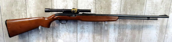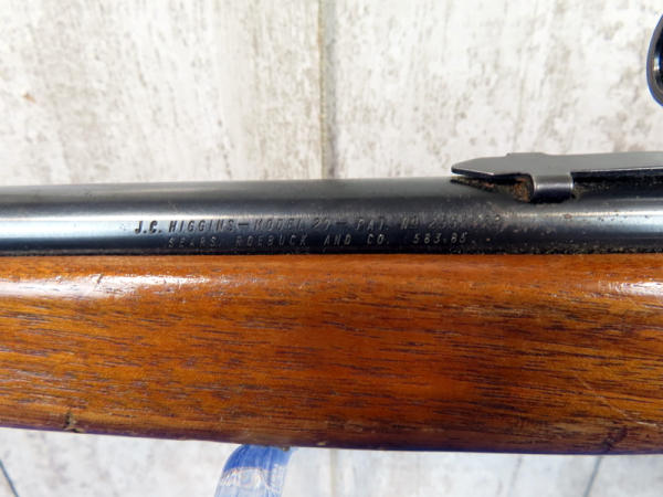 24" Bbl.; has some field marks; J.C. Higgins Rifleman 4x pencil scope; wood stock; USA; no SN#; A-61