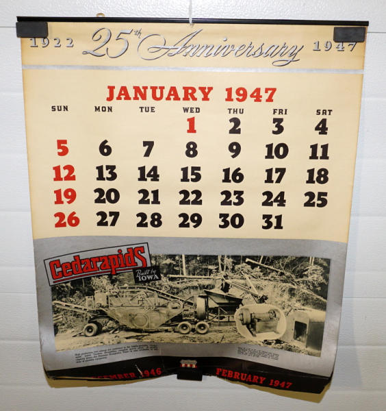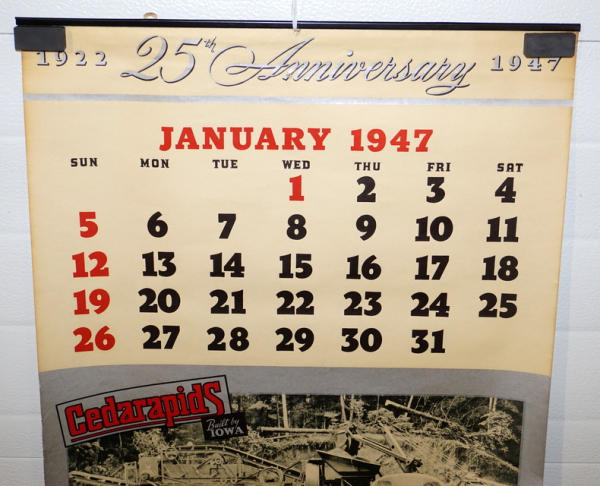 about 20"x25", complete with 12 pages and different graphics on each page, has the top metal band, bottom edge is a little rough, neat calendar overall