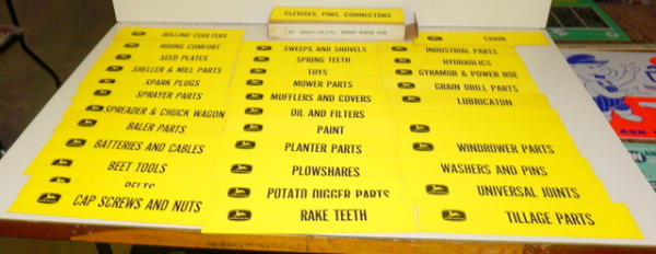 each sign is 3.25"x14", double sided, light cardboard, all NOS mint in the box dated 2-65; fantastic set!