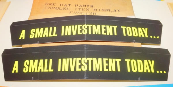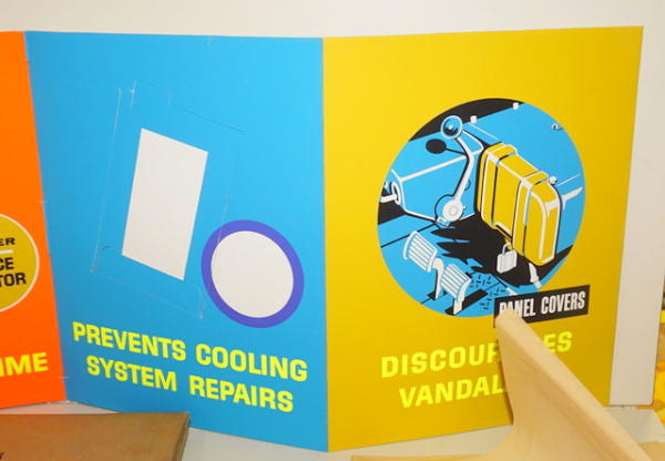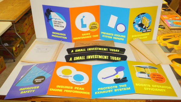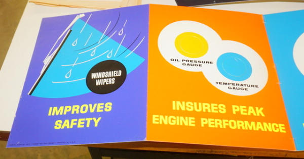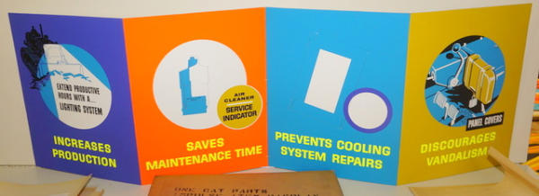 2 of the larger foldout signs unfold to about 14"x33" long, all NOS in the box, we opened the box!