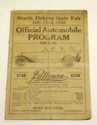 8 pages, has Pullman Car on the front, Bull Tractor on the back, and an Indian Motorcycle Ad from Fargo inside, really heavy wear, has been creased, not sure if 100% complete, but a neat piece of early ND history