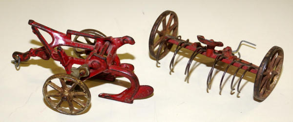 Plow has the back tip broken off, both have play wear, 2x the money